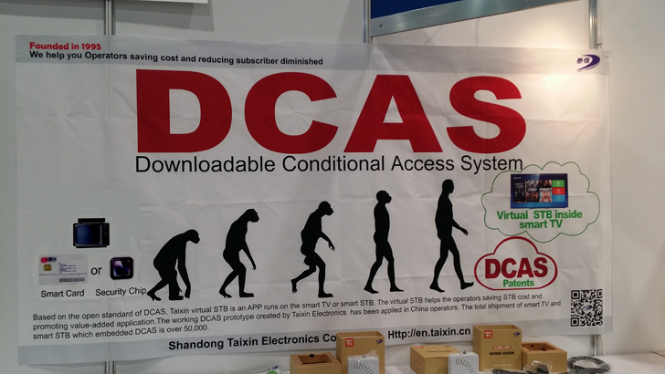 DVBCN數字電視中文網訊 美國當地時間4月7日,NAB2014在拉斯維加斯隆重拉開帷幕,國內的泰信下載CA(DCAS)首次在NAB亮相。8年前曾經在美國引起高度關注的下載CA技術,再度出現在美國,引起了人們的廣泛關注。