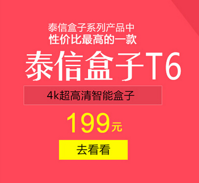 泰信電子暨二十周年慶(520日)特推出支持4K超高清的融合有線電視和網絡電視的泰信盒子T6,并以超低價199元回饋新老客戶,感謝廣大消費者對泰信的支持和認可。為期一個月的促銷活動即將結束,還未購買的朋友,抓緊行動吧!