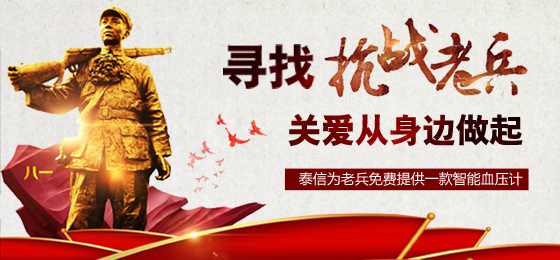 如果您身邊有健在的抗戰(zhàn)老兵,能夠獲悉他們的故事或狀況,請于9月3日之前將聯(lián)系方式告知我們,聯(lián)系電話:400-006-5311。泰信將提供100個智能血壓計表達(dá)對老兵的敬意。
