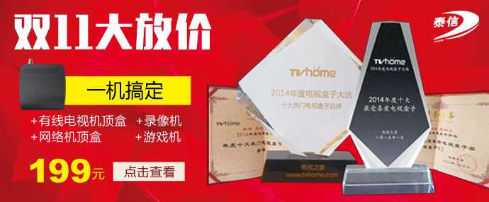 技術創(chuàng)新贏得產(chǎn)品領先!泰信盒子是國內(nèi)首款集廣電有線電視、網(wǎng)絡電視、錄像機、游戲機于一體的全國市場化銷售的融合型智能機頂盒。泰信盒子X2榮膺2014年度十大最受喜愛的電視盒子及品牌。爆款好機惠迎國慶,購機不必等到雙11!心動的小伙伴千萬不要錯過哦!