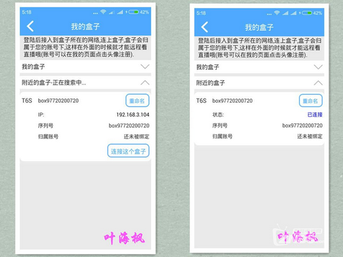 言歸正傳,談一下溫控器功能的實現。首先需要連接盒子到手機端。