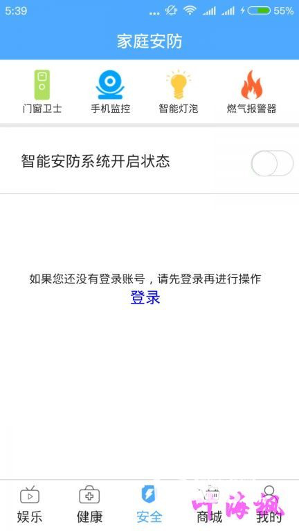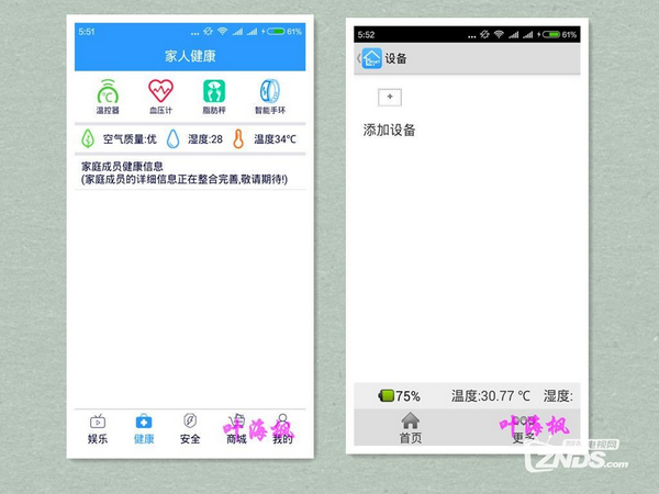 APP分為娛樂、健康、安全、商城、我的五個版塊,本文介紹的溫控器功能在健康版塊中,將做重點講述,其它幾個功能版塊僅作簡單介紹。