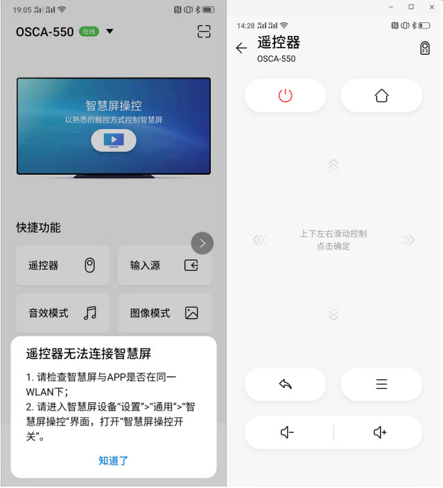 智慧屏手機(jī)主界面現(xiàn)在有5種功能。其中“智慧屏操控”最具亮點(diǎn),可以在手機(jī)上點(diǎn)播,在大屏上播放,手機(jī)也是遙控器。
