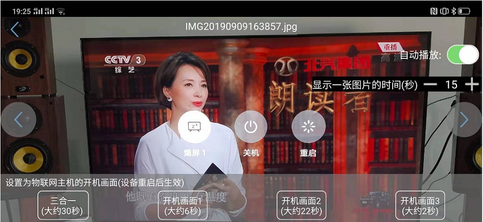 拍攝一張16:9的照片,在照片/本地列表/中選中要作為開機(jī)畫面的照片,可以設(shè)置為某一個開機(jī)畫面,也可以設(shè)置為所有的開機(jī)畫面。三合一的意思是開機(jī)畫面1/2/3使用同一張照片。