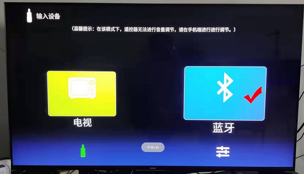從藍(lán)牙音箱模式切換到“中央4臺”,關(guān)掉電視也可以操作。