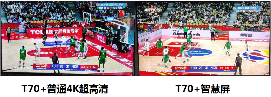 在連接T70收看圖像快速運(yùn)動的體育頻道時,智慧屏的運(yùn)動補(bǔ)償似乎沒有發(fā)揮作用,也沒有找到菜單中開啟運(yùn)動補(bǔ)償?shù)拈_關(guān)選項(xiàng),有待今后慢慢研究。