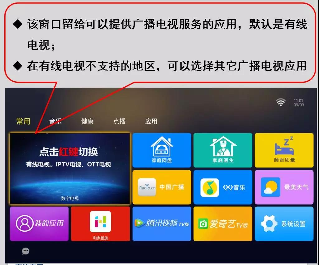 雖然T70在硬件上支持有線電視,也在出廠前作為默認(rèn),但一些地方的有線電視業(yè)務(wù)仍然只捆綁自己的機(jī)頂盒。這時,T70給了用戶更多的選項(xiàng):將焦點(diǎn)移到直播電視窗口,點(diǎn)擊遙控器上的紅色按鍵,切換廣播電視服務(wù)提供商,將選擇權(quán)還給用戶。