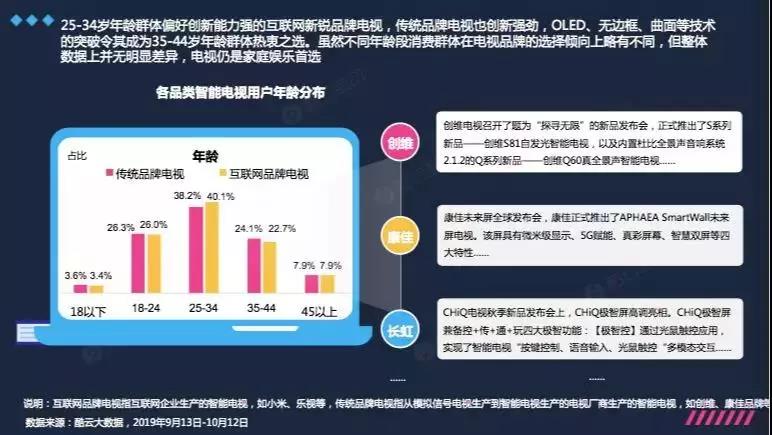 自2013年中國步入互聯(lián)網(wǎng)電視元年后,低價且科技意味濃郁的互聯(lián)網(wǎng)電視似乎成為市場的寵兒,這自然會讓人懷疑,是不是傳統(tǒng)品牌電視不再受人歡迎? 實際上,在互聯(lián)網(wǎng)品牌電視的沖擊下,傳統(tǒng)品牌也依然保持著強勁的勢頭,在科技創(chuàng)新及市場表現(xiàn)上皆為亮眼。從創(chuàng)新上看,創(chuàng)維推出S系列新品,康佳發(fā)布APHAEA SmartWall未來屏電視,長虹揭曉CHiQ極智屏……傳統(tǒng)品牌集體發(fā)力,將電視賦予更為濃厚的科技屬性。從市場表現(xiàn)來看,35-44歲的用戶群體更偏愛選擇傳統(tǒng)品牌電視,占比達到24.1%;25-34歲的消費主力人群雖然更偏好互聯(lián)網(wǎng)品牌電視,但傳統(tǒng)品牌電視依然占比38.2%,只比互聯(lián)網(wǎng)品牌電視低1.9個百分點。因此,從《報告》來看,雖然不同年齡段消費者在電視品牌選擇上的傾向略有不同,但整體而言平分秋色,無論是哪種品牌類型,電視作為家庭娛樂首選,都是用戶生活中不可或缺的家電TOP 1。