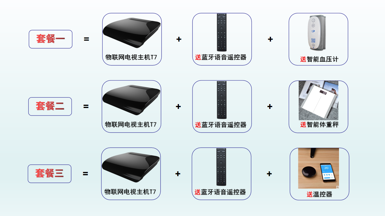 套餐一:送藍(lán)牙語音遙控器+智能血壓計(這款血壓計是泰信自主研發(fā)的,一鍵測量、智能加壓,可以語音播報并查看歷史測量數(shù)據(jù))!