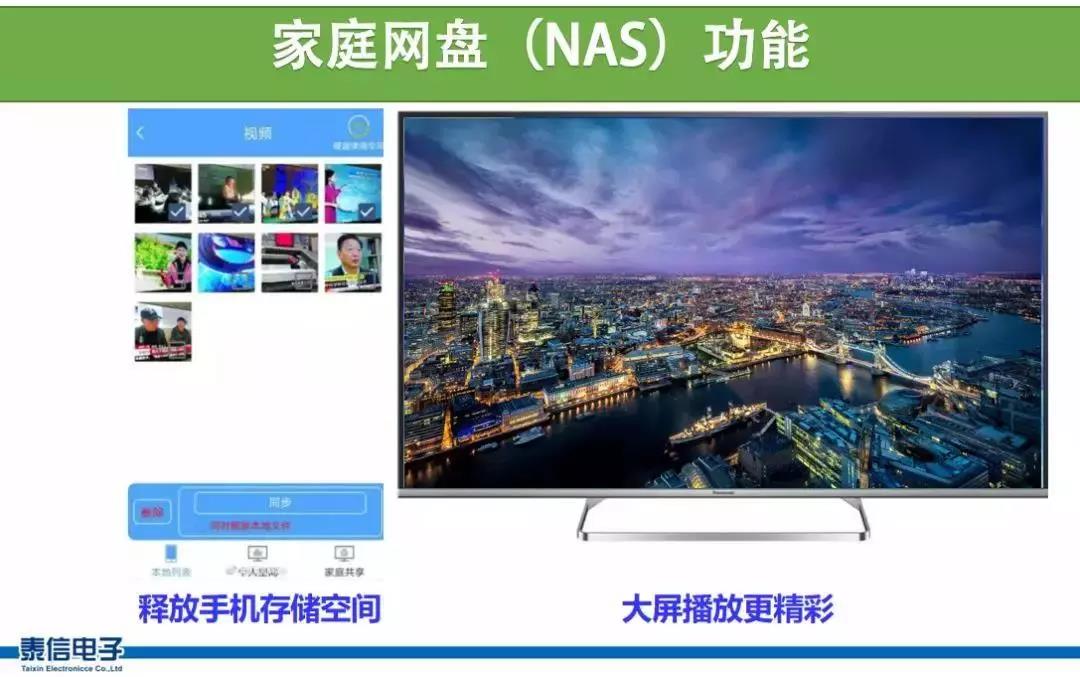 【泰信T6K智能家庭音箱】連接USB硬盤還能實(shí)現(xiàn)NAS功能,手機(jī)軟件端控制,可以給手機(jī)設(shè)定數(shù)據(jù)自動(dòng)備份,也可以在電視上直接播放硬盤里的照片、音視頻等內(nèi)容。相比網(wǎng)絡(luò)云盤,速度更快,私密性更好,很實(shí)用的功能。