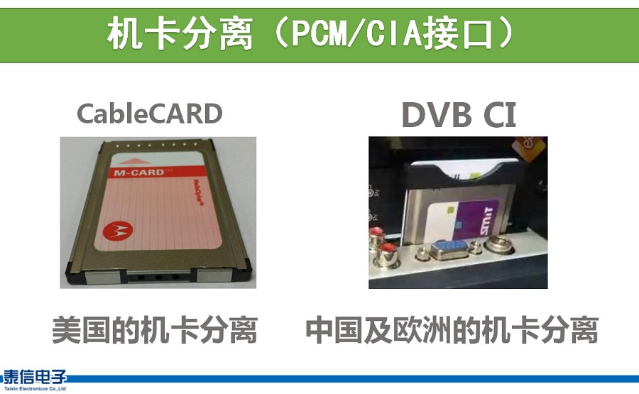 2006年4月,我國發(fā)布了基于DVB CI標(biāo)準(zhǔn)的機(jī)卡分離標(biāo)準(zhǔn),在一個大卡中插入小卡(智能卡),再將大卡插入獨(dú)立的電視機(jī)或機(jī)頂盒。
